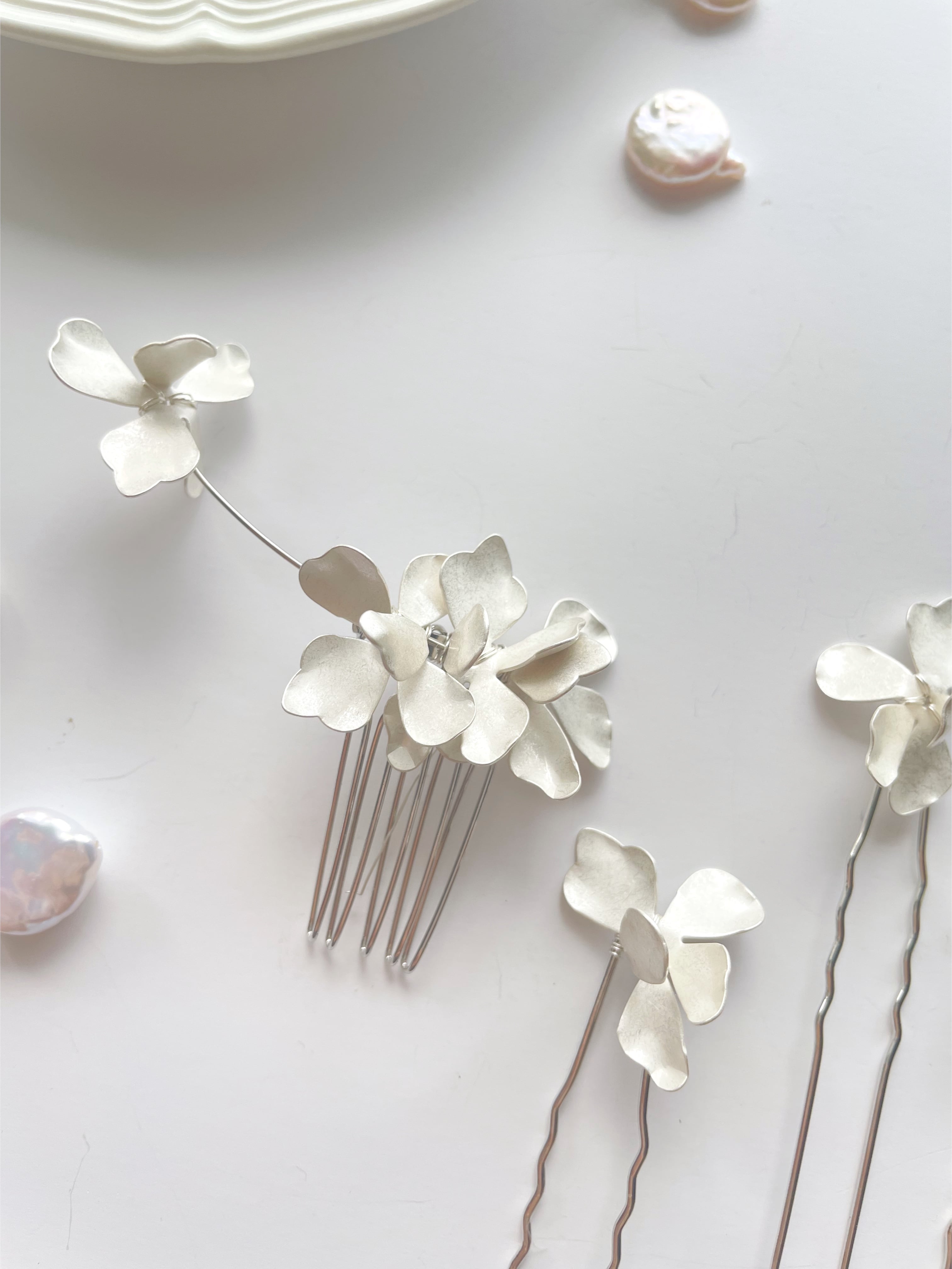肌馴染みのいい艶を抑えた明るいシルバーのお色味なので、結婚式や前撮りはもちろん、数を減らしてお友達の結婚式にもお使いしやすいのもポイントです。