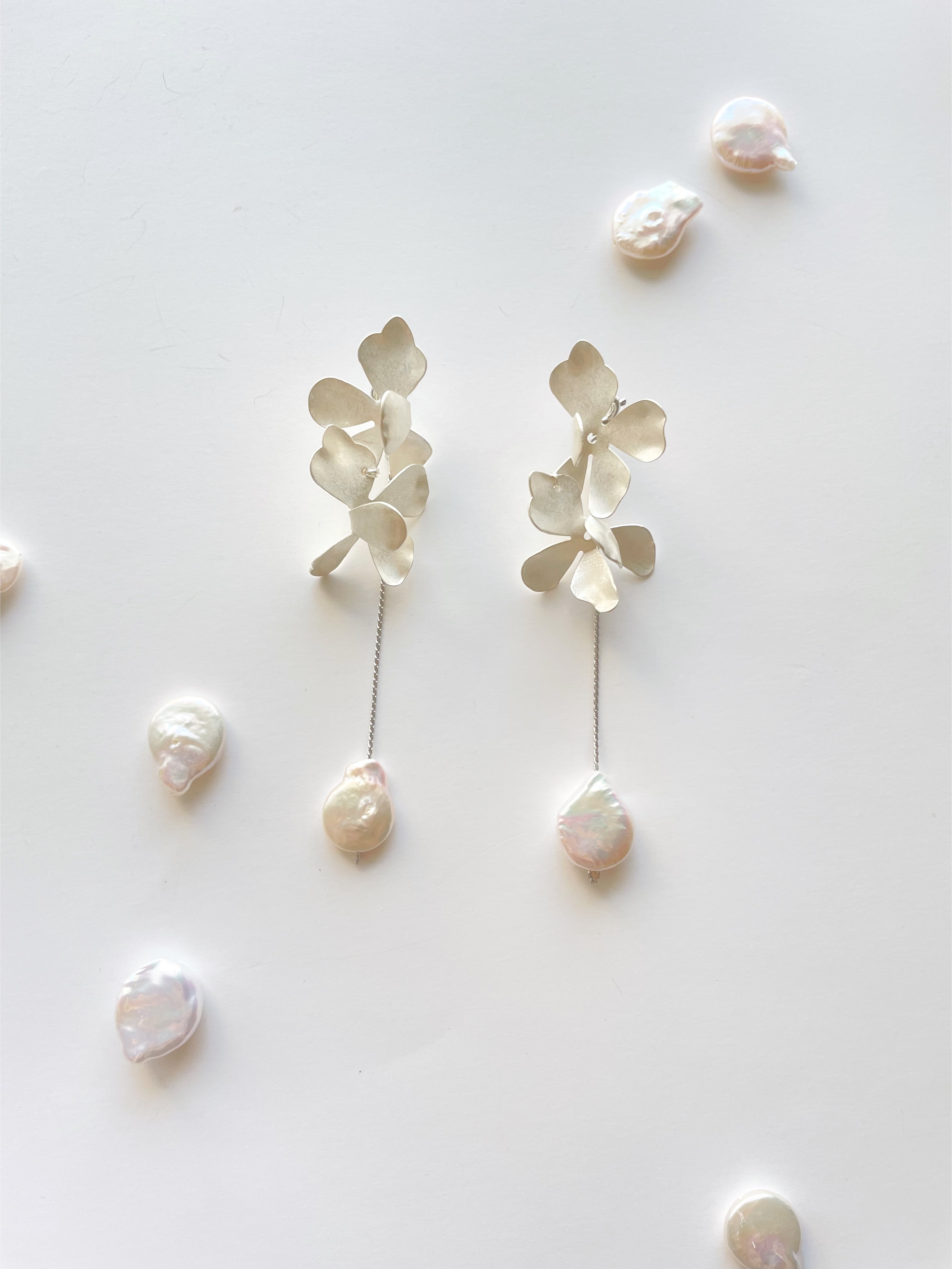 下のパールを取り外してトップ二つのフラワーのみでもお使いいただける2wayタイプ。