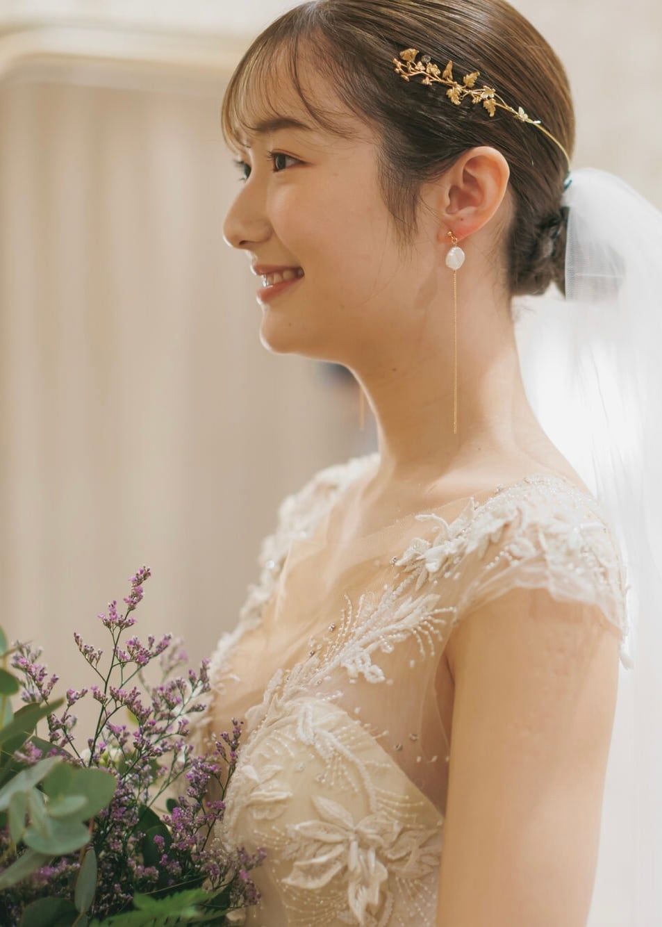 ナチュラルな雰囲気のブライダルシーンにはもちろん、特別な日や普段使い、お友達の結婚式など、大切な日の思い出のアクセサリーを長くお使いいただけます