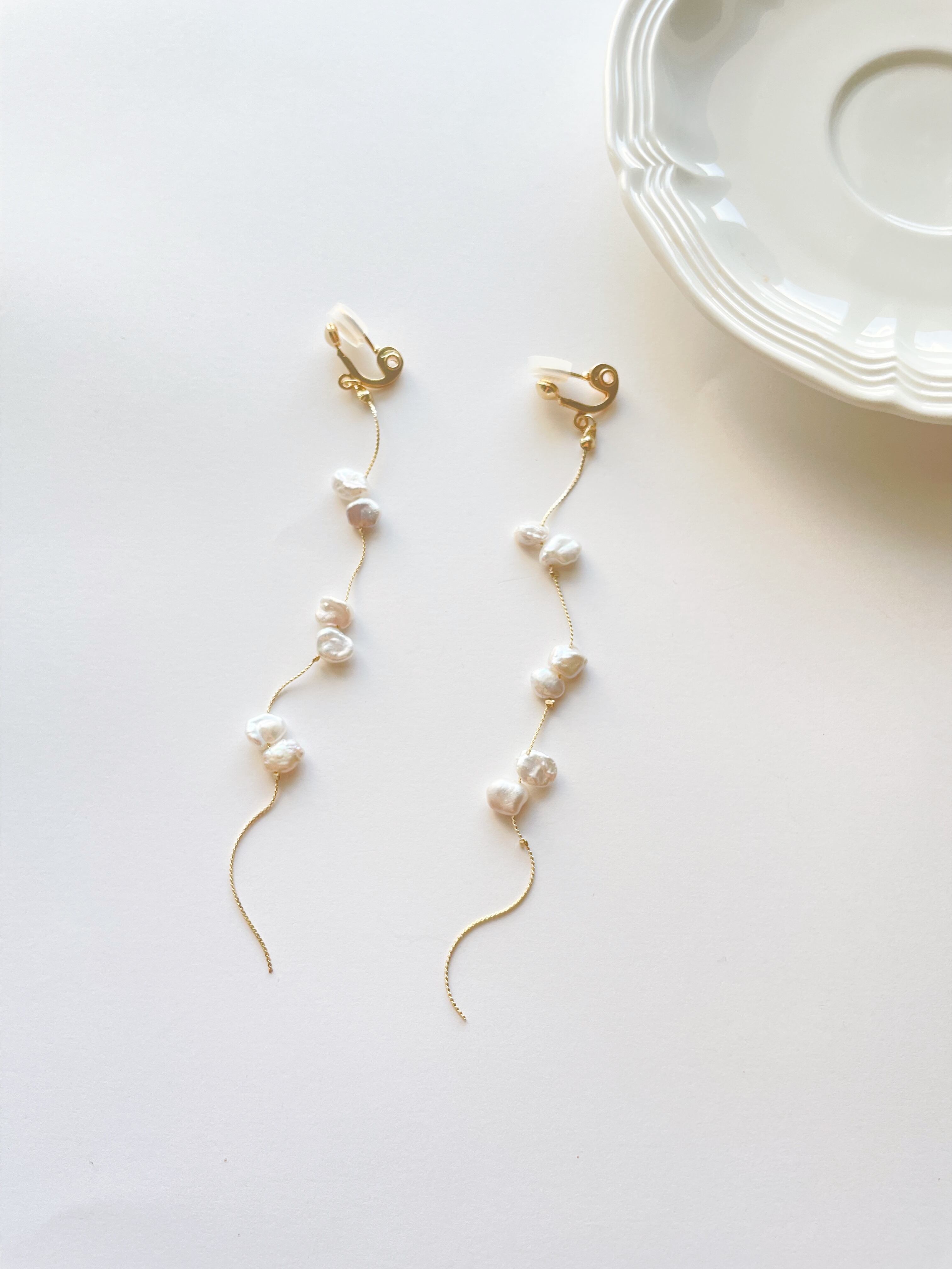 動くたびに揺れるので繊細ながらお顔まわりをぱっと華やかな印象にしてくれます