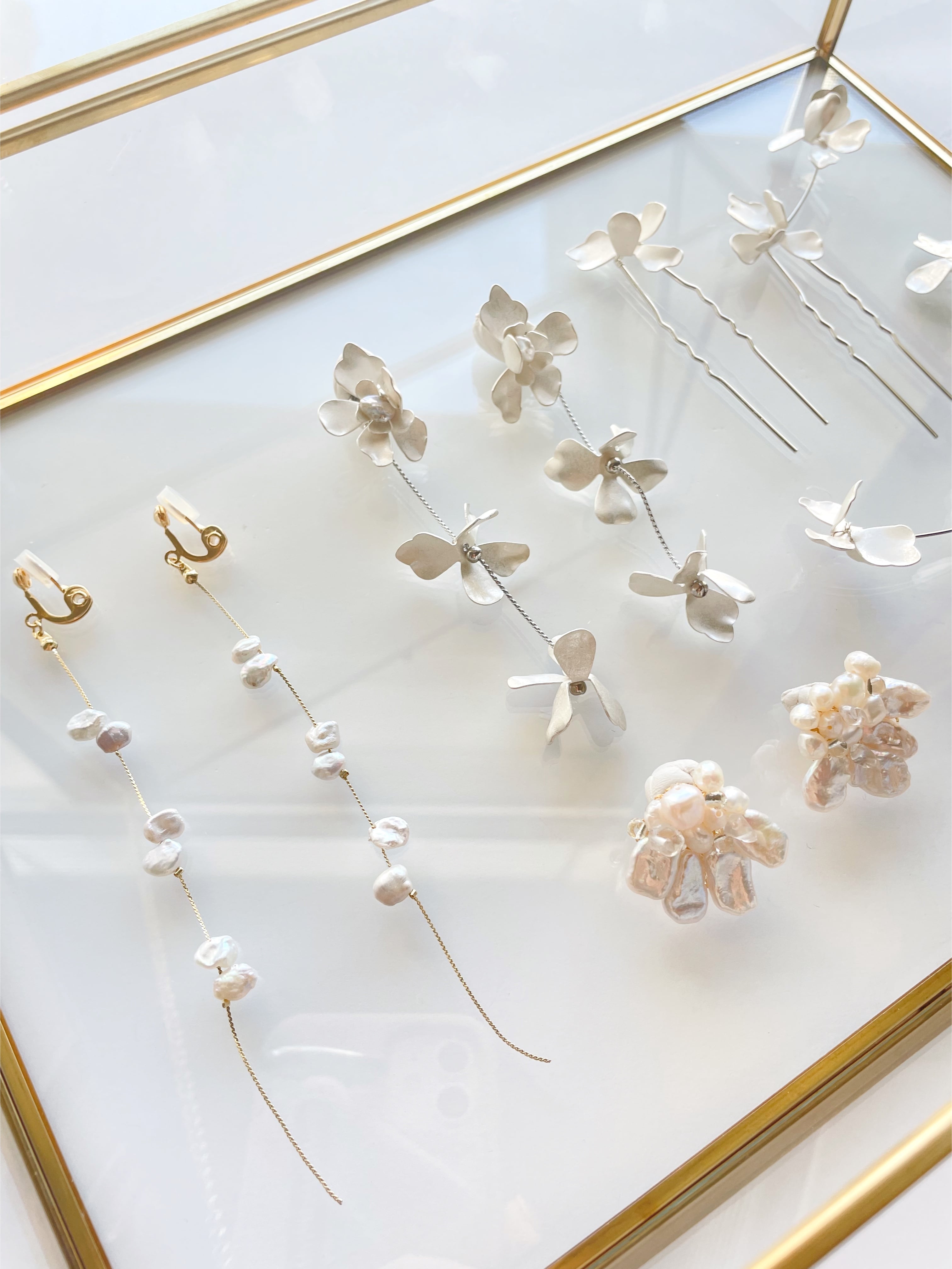 ナチュラルな雰囲気のブライダルシーンにはもちろん、特別な日や普段使い、お友達の結婚式など、大切な日の思い出のアクセサリーを長くお使いいただけます