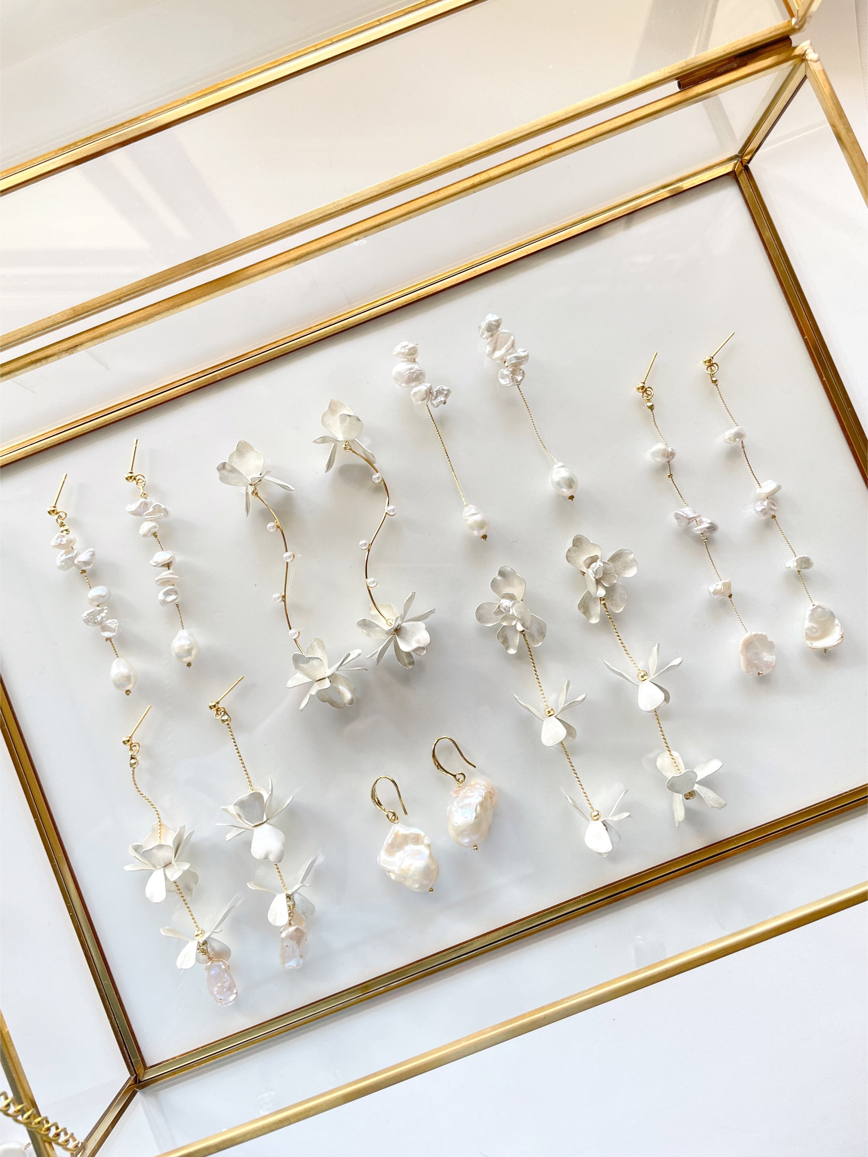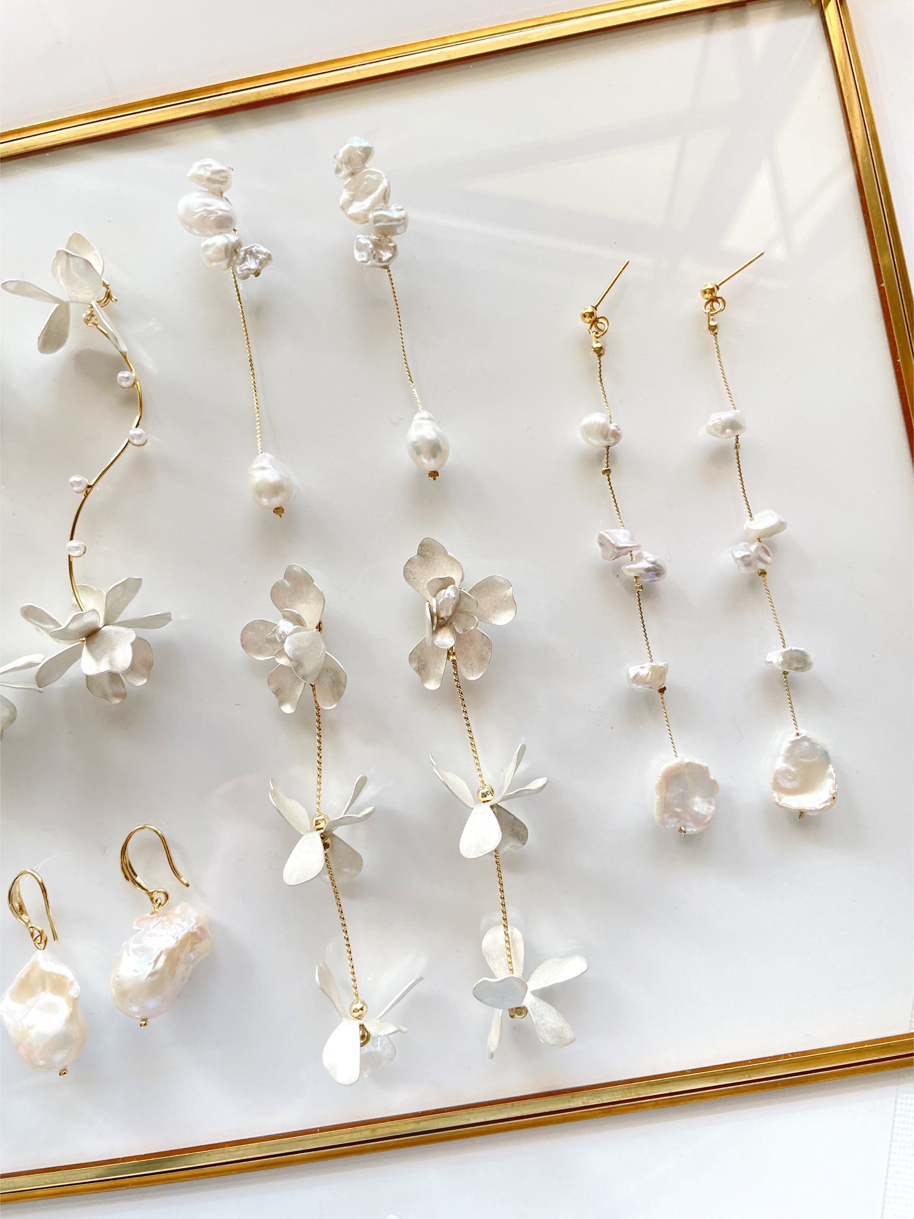 ナチュラルな雰囲気のブライダルシーンにはもちろん、特別な日や普段使い、お友達の結婚式など、大切な日の思い出のアクセサリーを長くお使いいただけます