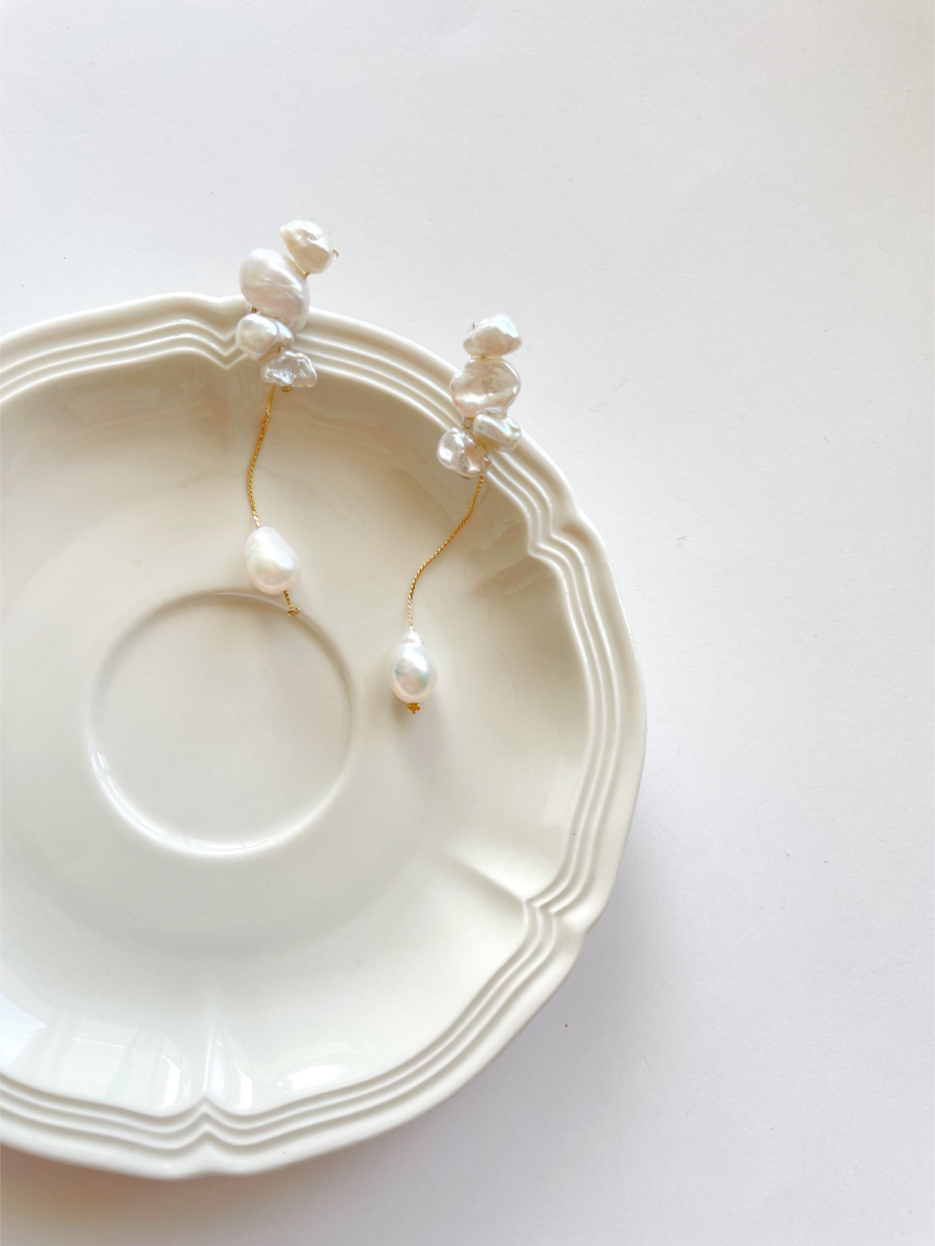 一つ一つ形の違う淡水パールは花びらのようで、それぞれ表情があり、使えば使うほど愛着が湧きます