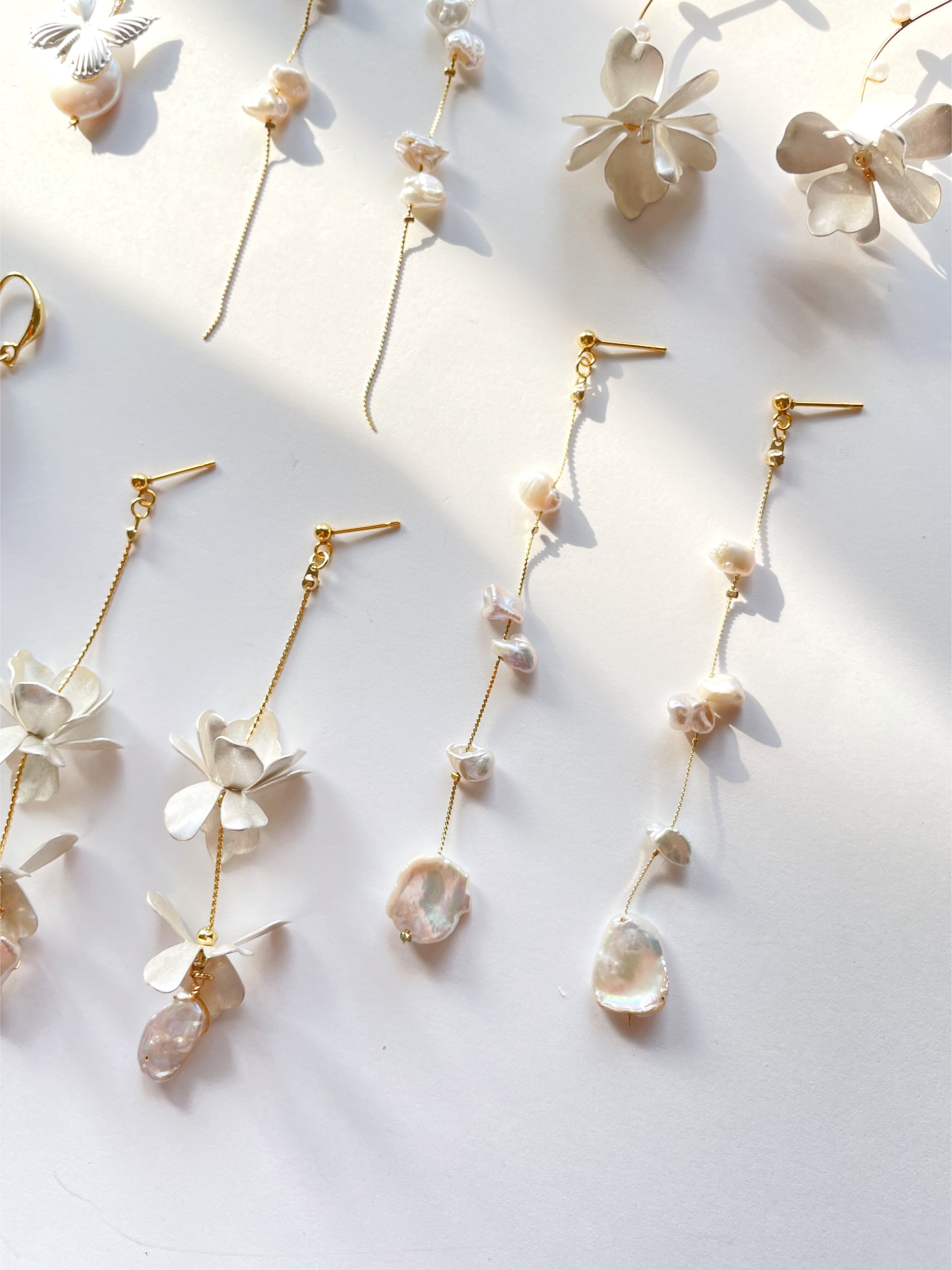 一つ一つ形の違う淡水パールは花びらのようで、それぞれ表情があり、使えば使うほど愛着が湧きます