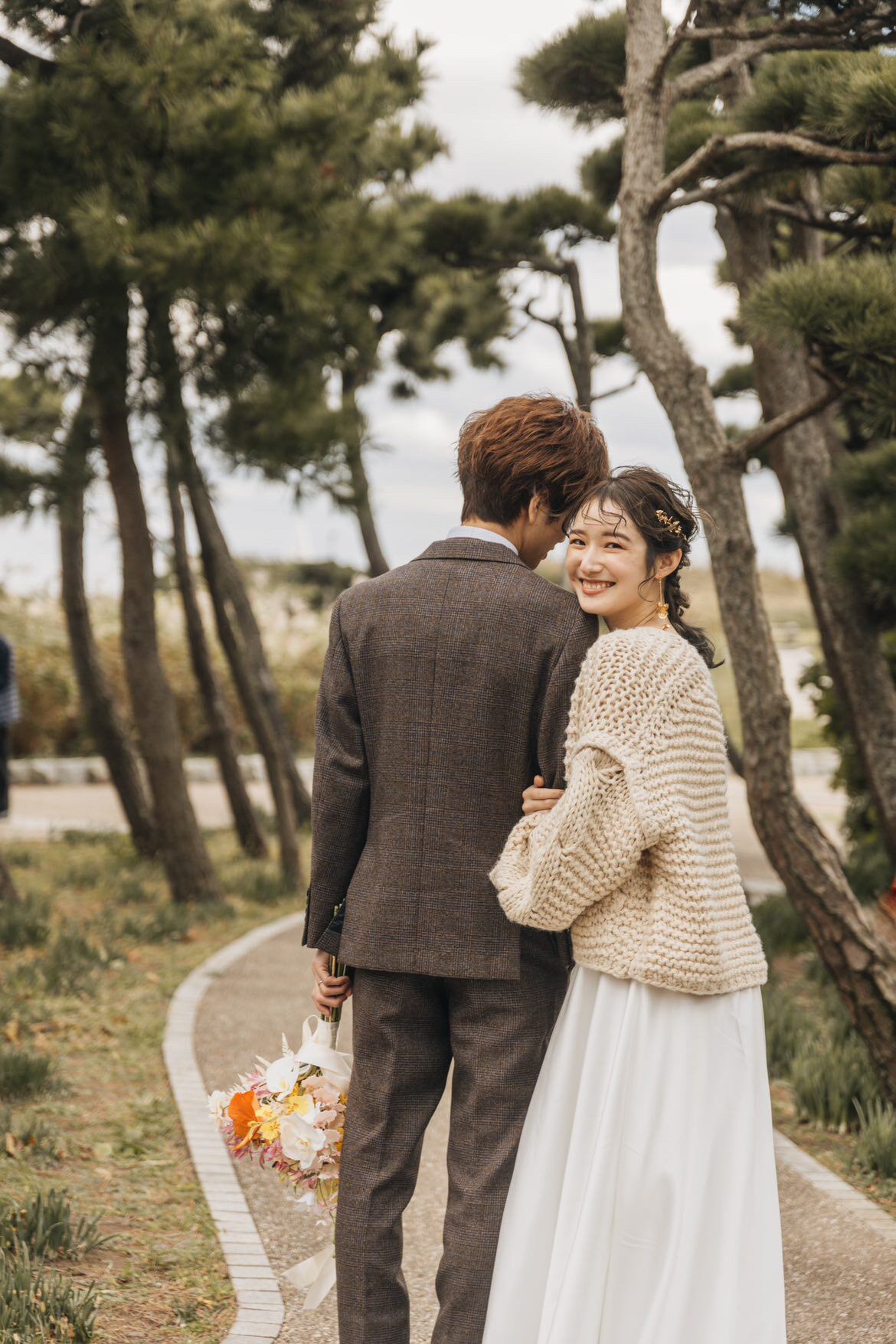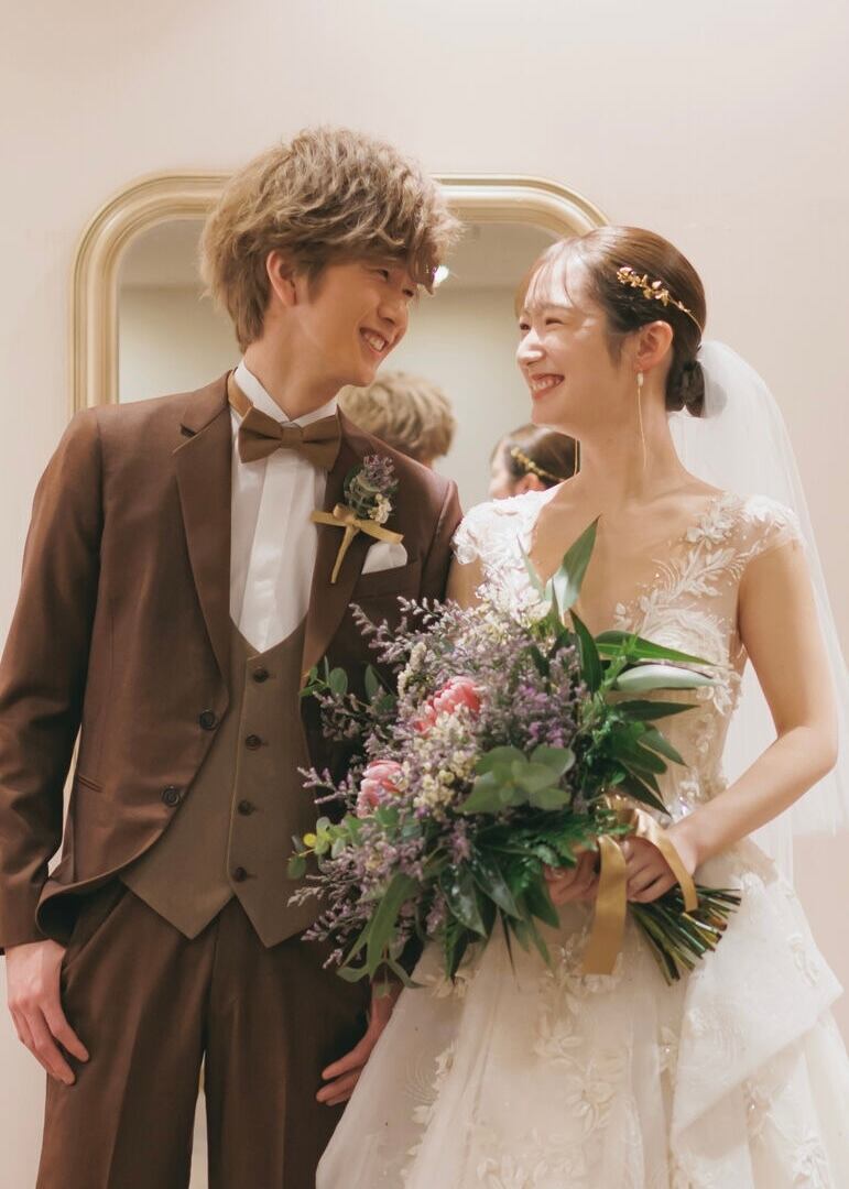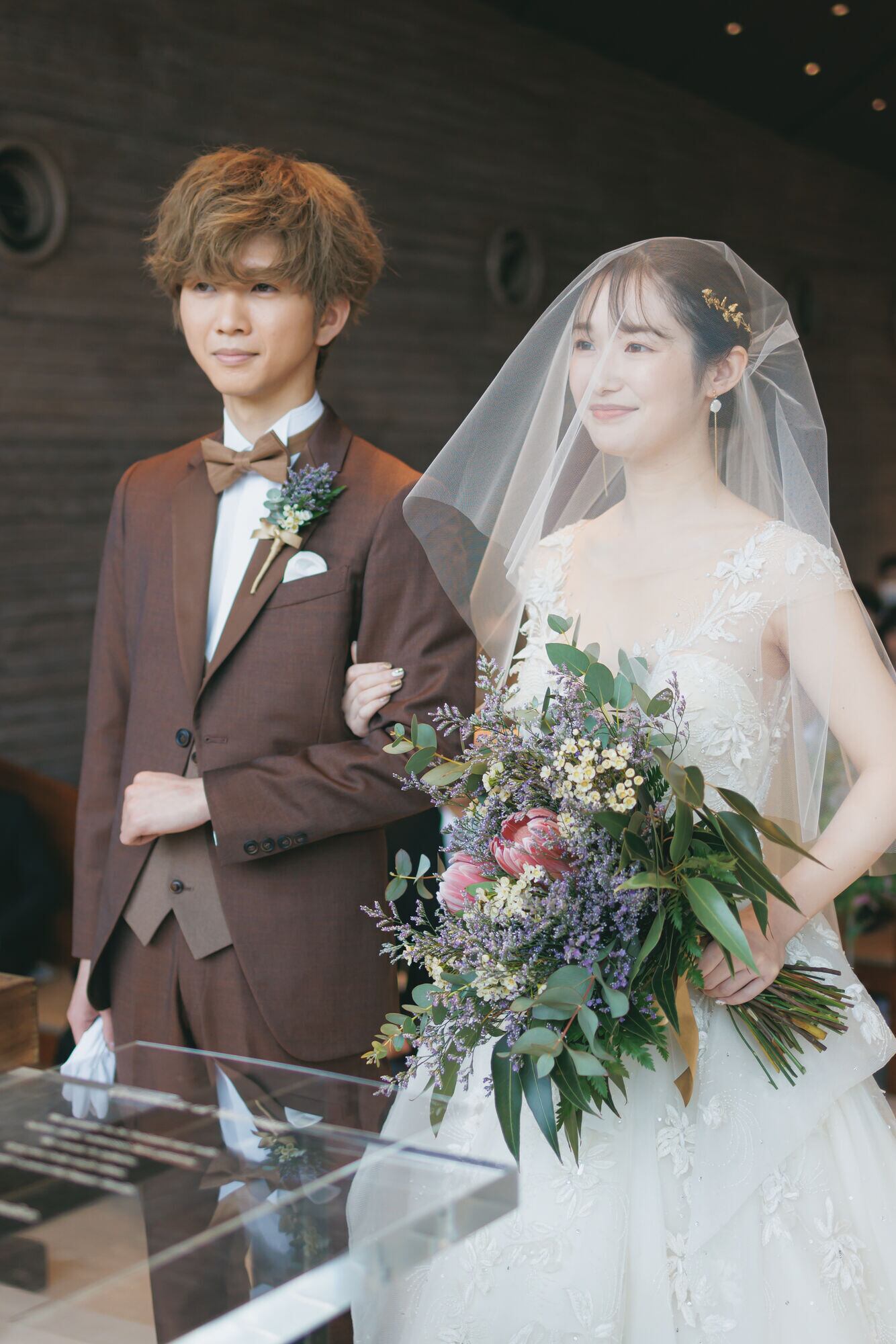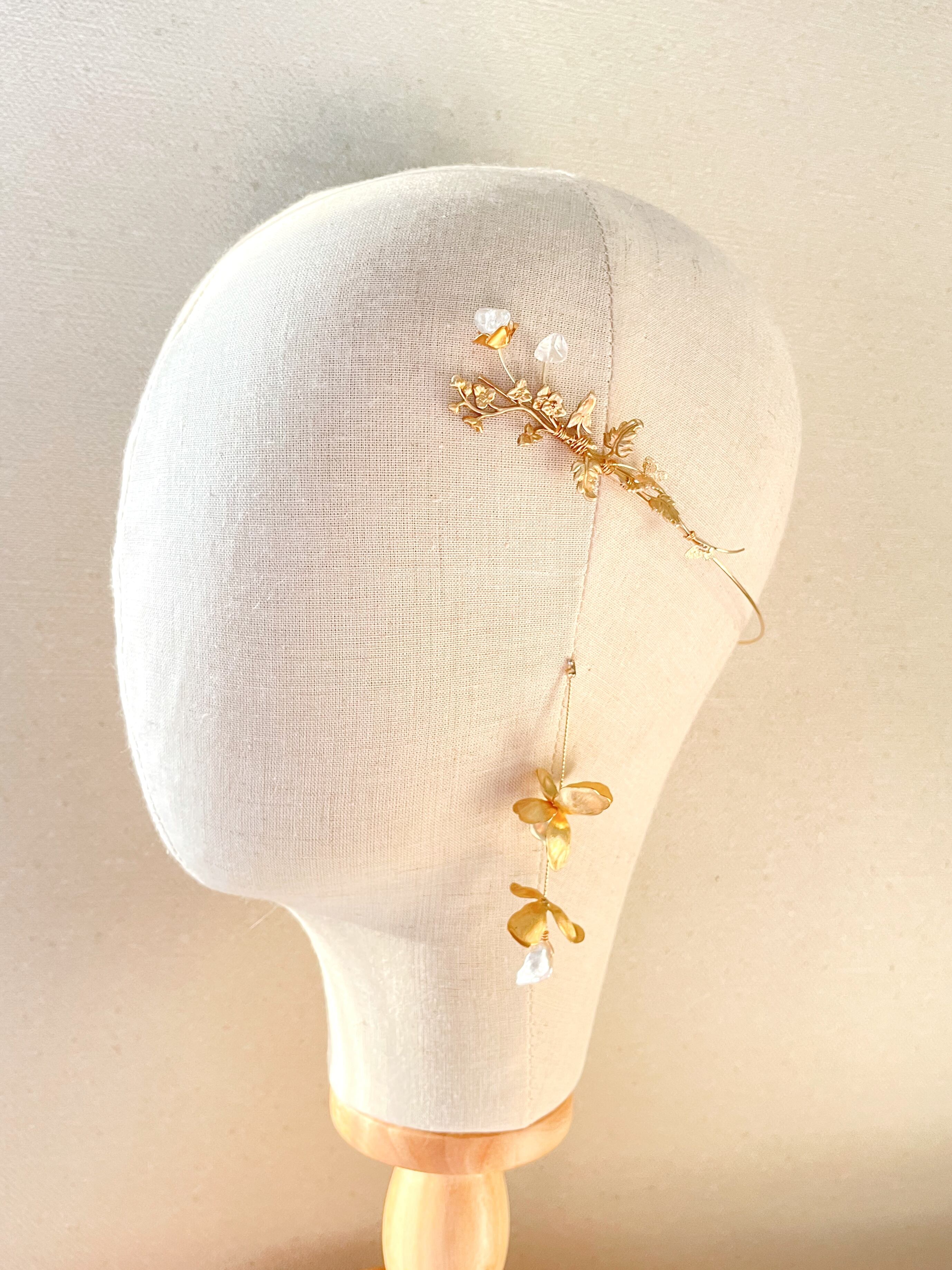 真鍮のアンティークゴールドのお色味は肌馴染みがよく、ナチュラルテイストなドレスとの相性もばっちり