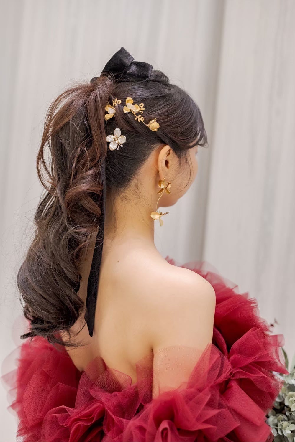 グロウゴールドのお色味なので、きらきら輝いて華やかな印象に