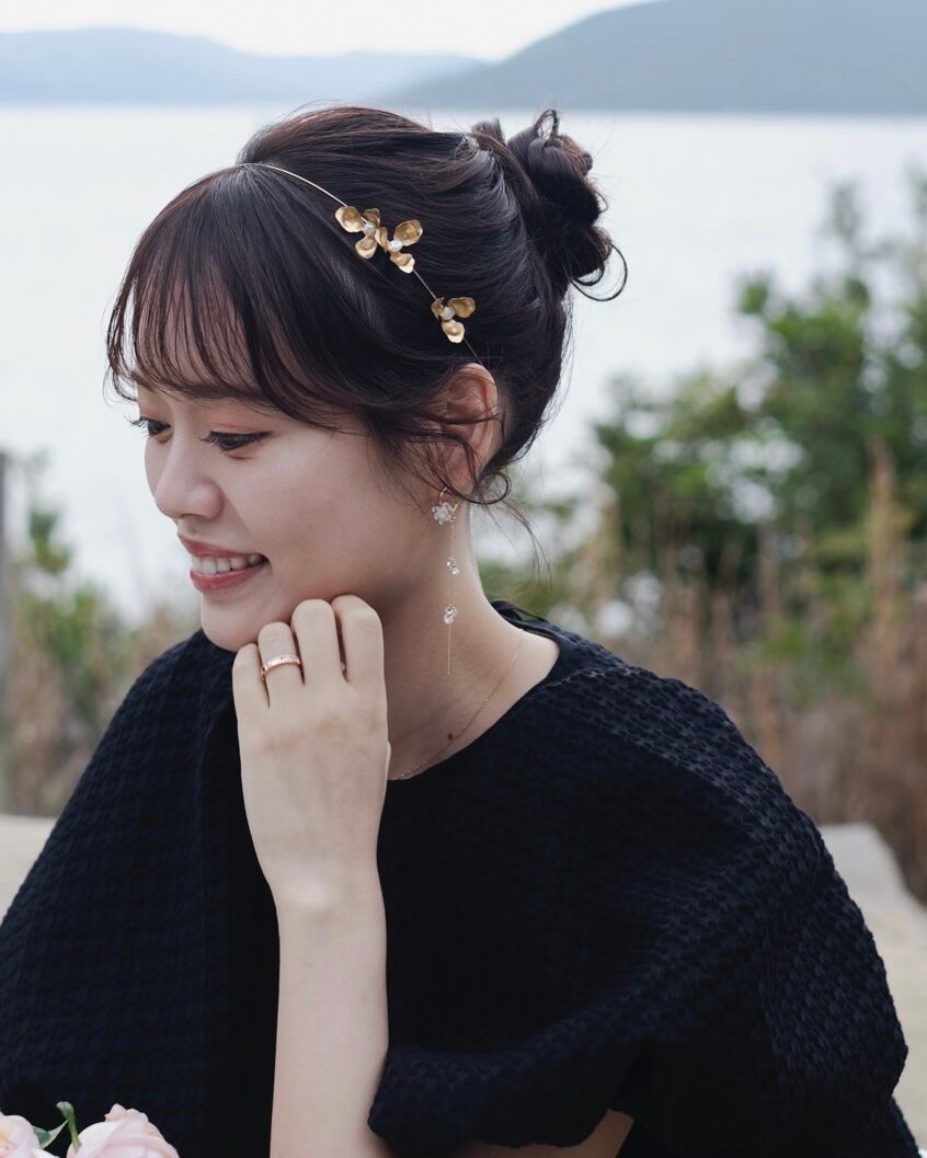 同じお色味のゴールドアクセサリーと合わせていただくと、統一感がでてとても可愛いのでおすすめです